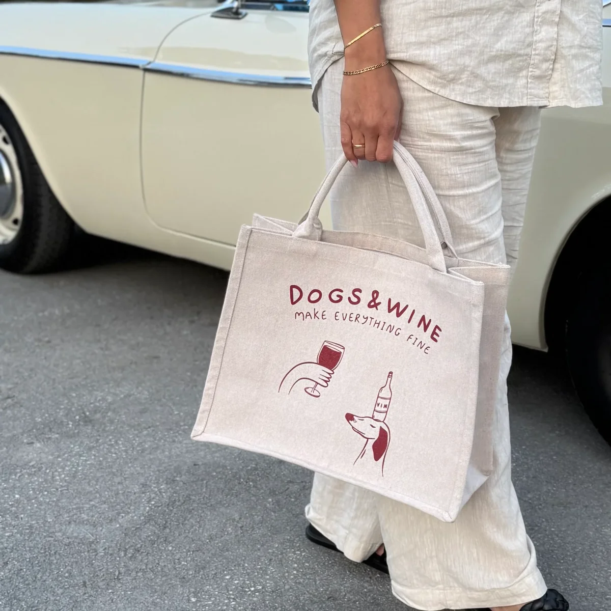 Carry your essentials in style with our Premium Tote Bag featuring the charming design of “Dogs & Wine Make Everything Fine”. With this versatile bag by your side, you’ll have everything you need to make any day a little more fine (and a lot more fun)!