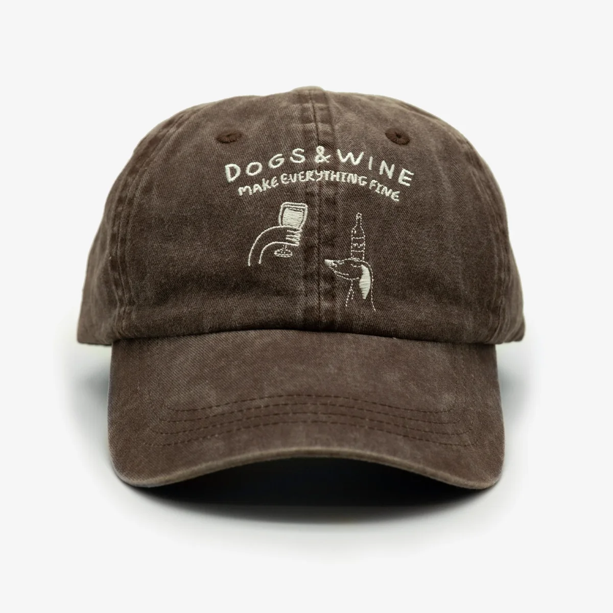 Deze speelse bruine denim pet met het grafische logo “Dogs & Wine Make Everything Fine” is het perfecte accessoire voor elke hondenliefhebber. Houd de zon uit je ogen terwijl je je eigenzinnige gevoel voor humor laat zien. Een stijlvolle en leuke toevoeging aan elke outfit.