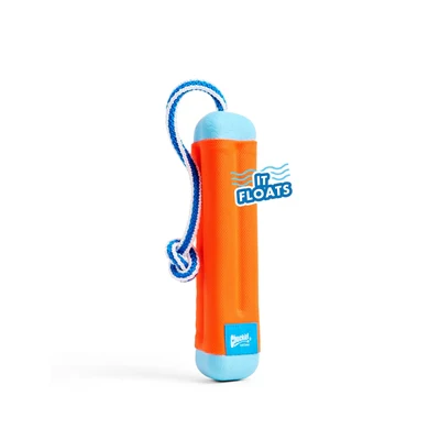 De Chuckit Amphibious Bumper Assorti 25 x 5 cm is een drijvend hondenspeeltje in een opvallende kleur, ideaal om met de hond in en om het water te spelen. Deze dummy van Chuckit! blijft hoog op het water drijven: dit zorgt ervoor dat hij goed zichtbaar is voor jouw hond. Ook de opvallende kleuren, oranje of groen, dragen daar aan bij. Dit zorgt ervoor dat deze Bumper ideaal is om mee te spelen en te apporteren op het strand en in het water. Het touw aan de dummy stelt je in staat de Bumper extra ver weg te gooien. Van bekende stevige Chuckit! kwaliteit en dus zeer duurzaam!