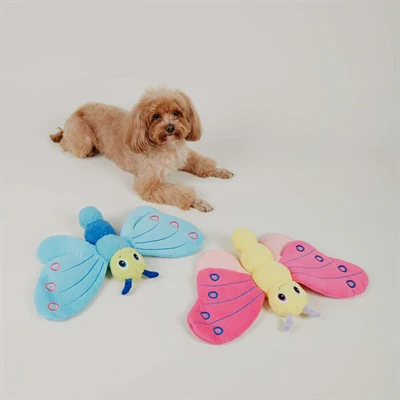 Gemaakt van zachte pluche materialen, die vriendelijk zijn voor de kaken en poten van je hond, biedt dit speeltje zowel comfort als plezier. De foamvulling in de vleugels van de vlinder maakt het ideaal om mee te knuffelen. Dit speeltje is geschikt voor volwassen honden die houden van trekken, knuffelen en mild bijten.
