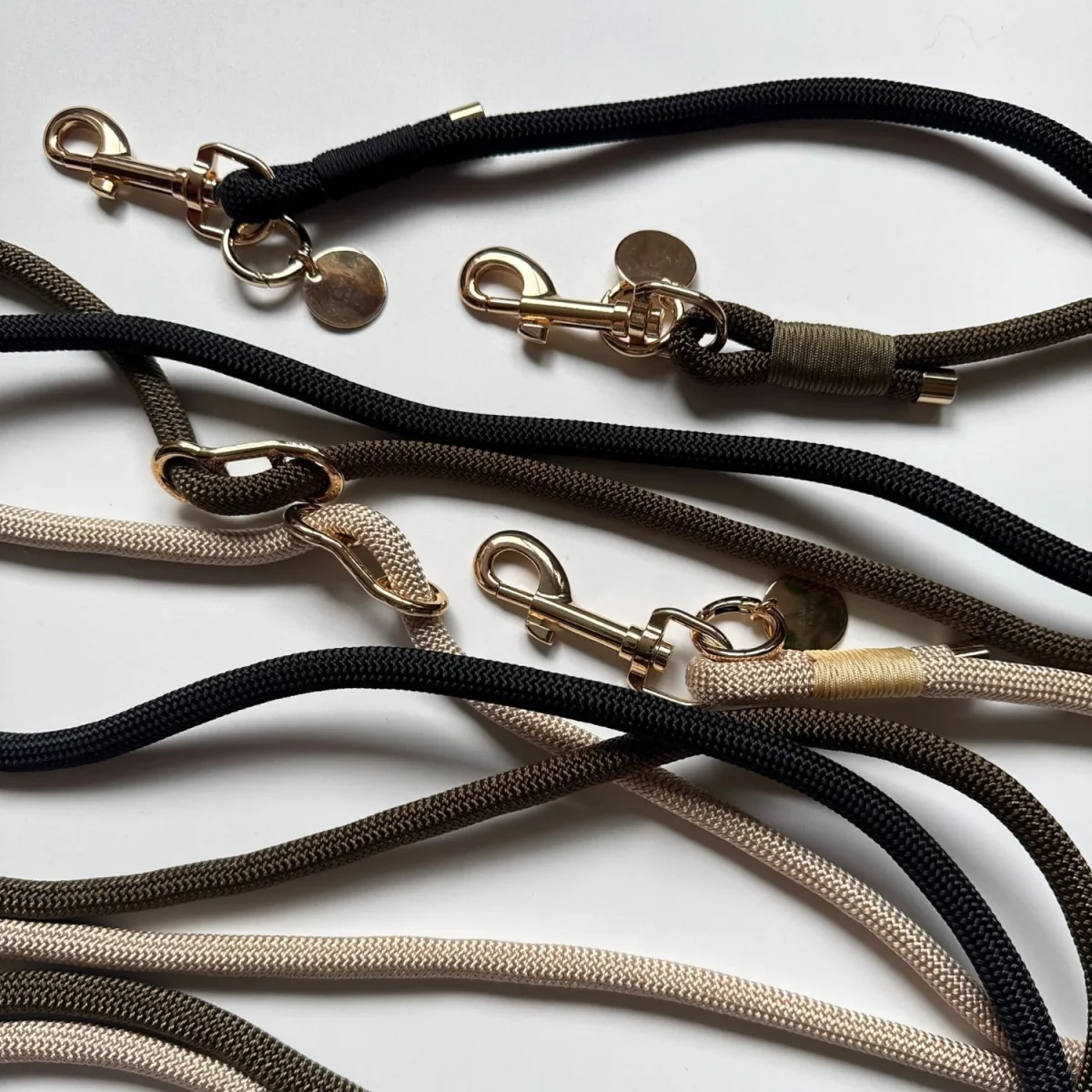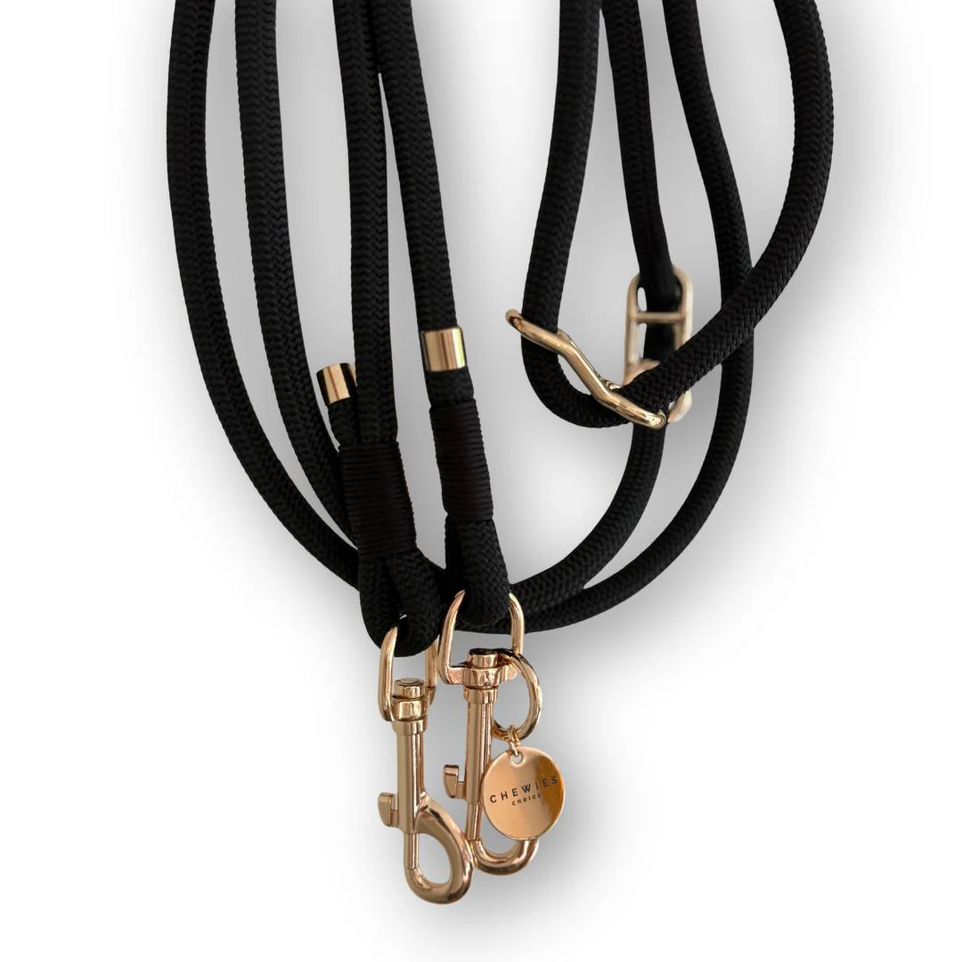 De handsfree hondenriem is in 3 kleuren verkrijgbaar, allemaal met prachtige gouden details: