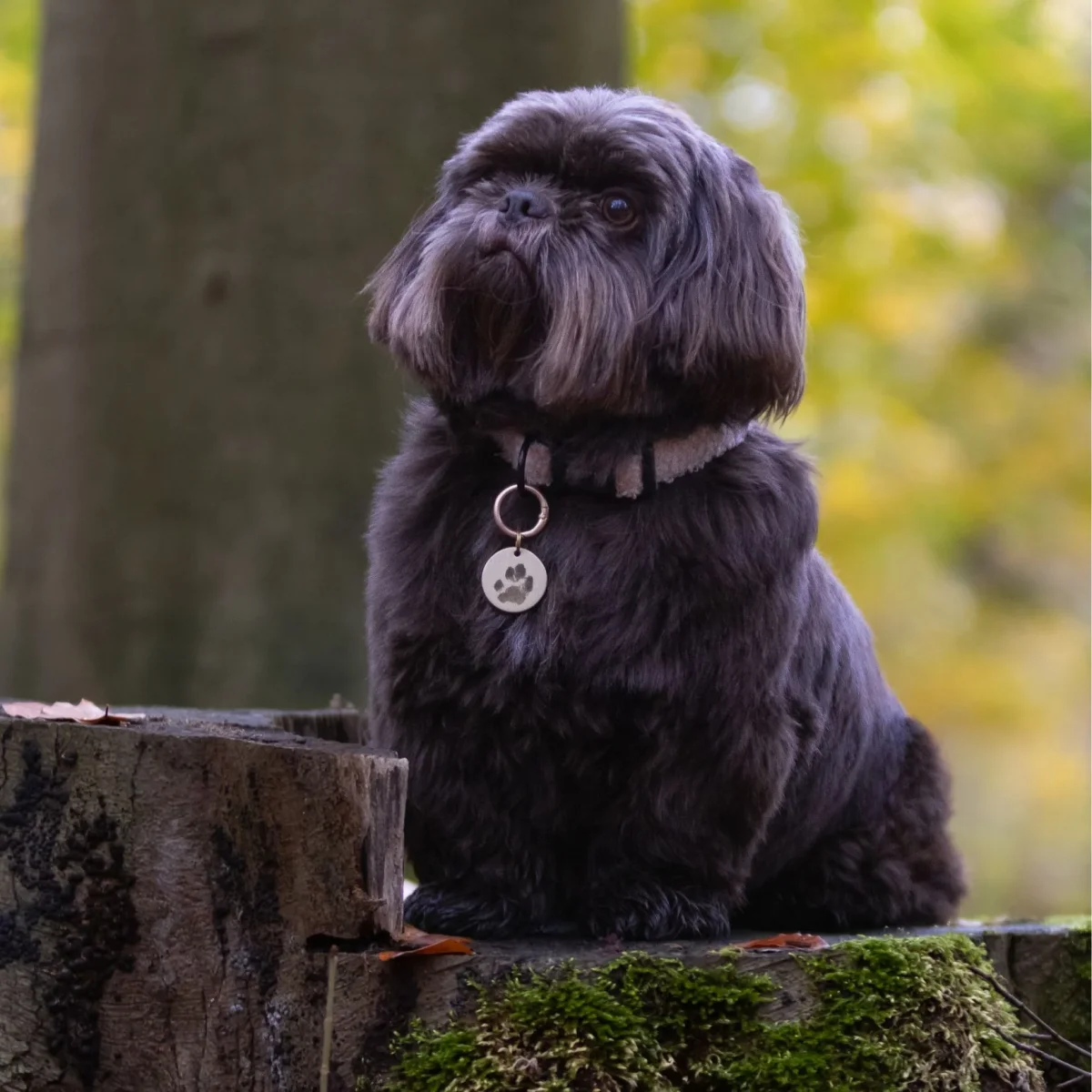 De pootafdruk kun je vervolgens laten graveren op onze hondenpenningen.