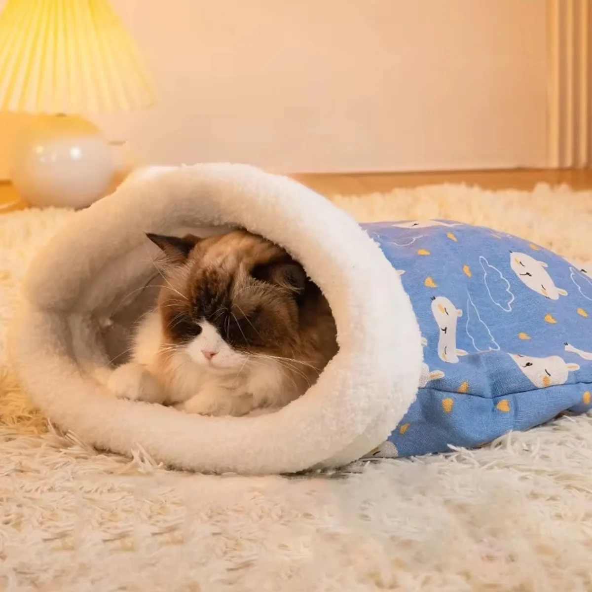 Jouw kat verdient een warme en knusse slaapplek! De Katten Slaapzak biedt een veilige, comfortabele schuilplaats waarin je kat zich heerlijk kan terugtrekken.