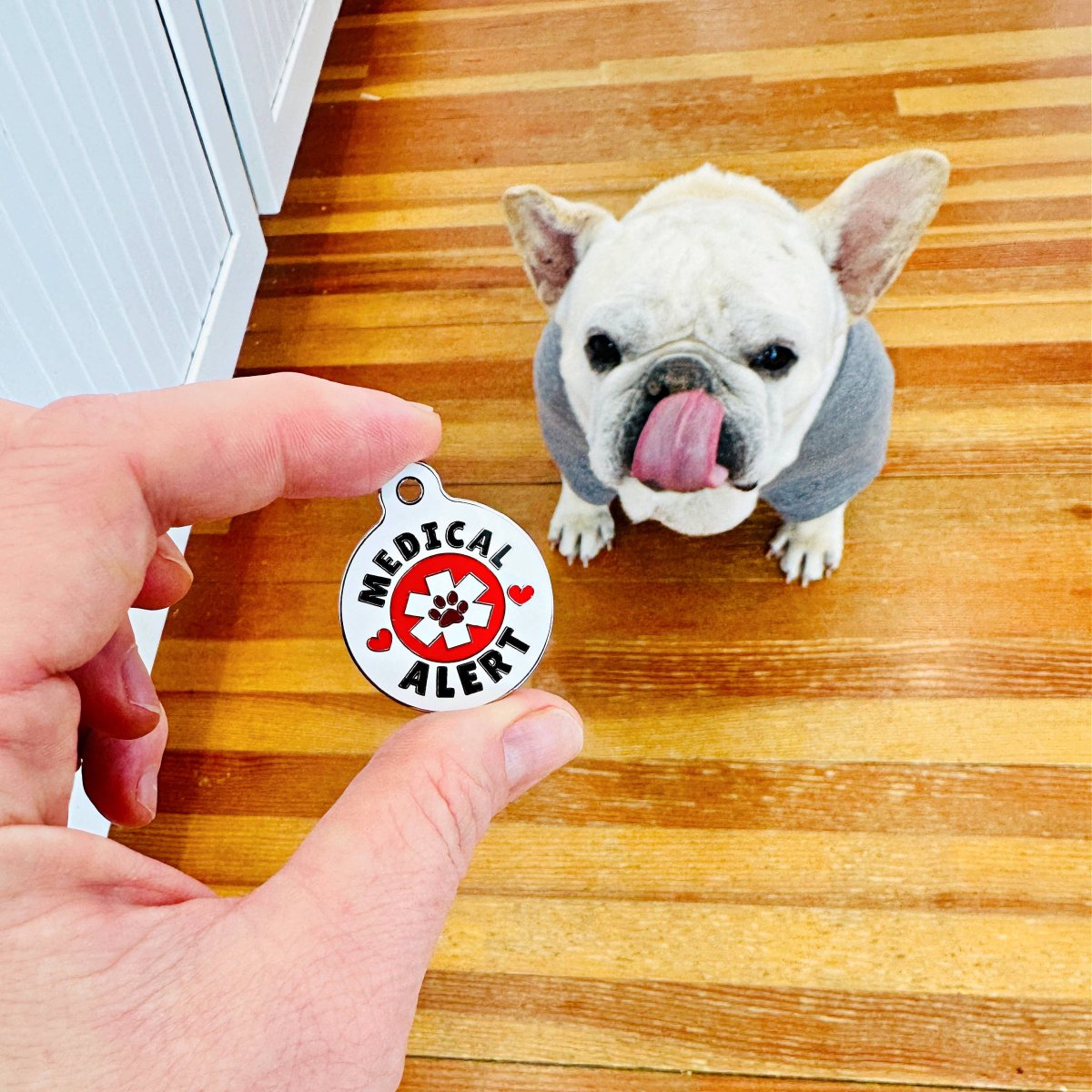 Houd je huisdier veilig én stijlvol met onze opvallende rood-witte “Medical Alert” hondenpenning – speciaal ontworpen voor huisdieren met bijzondere zorgbehoeften. Personaliseer de achterkant met belangrijke informatie voor gemoedsrust in elke situatie!