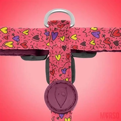 Het Morso Hondentuig H-Tuig Gerecycled Pink Think Roze 40-55X1,5 cm is een zacht, comfortabel en sterk hondentuig met mooi design, gemaakt van gerecycled materiaal. Met dit tuig laat jij jouw hond in style uit! Gemaakt van gerecyclede PET flessen, comfortabel en sterk: dit tuig is een must have voor ieder hondenbaasje. Het zachte materiaal trekt niet aan de vacht en irriteert de huid niet. Het tuig is op vijf plekken te verstellen, waardoor het helemaal passend te maken is voor jouw hond. Het tuigje is te wassen op 40 graden Celsius.