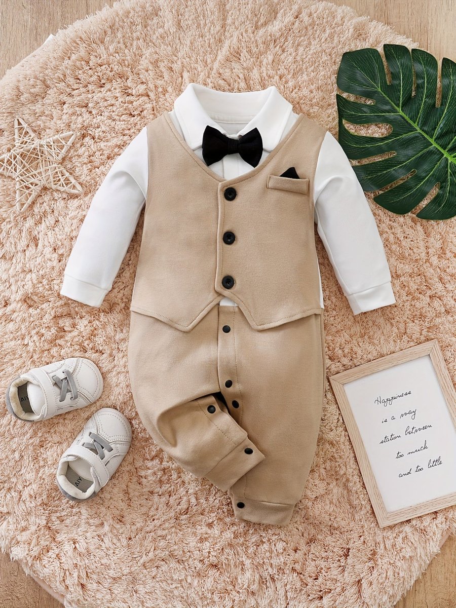 - Elegante stijl: Het klassieke vest met vlinderdas geeft je baby een chique uitstraling.