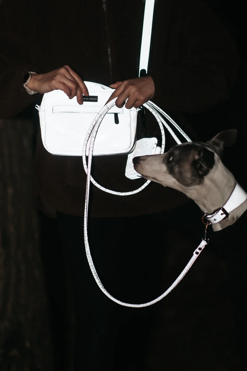 De Reflective Silver Doggy Bag combineert stijl, functionaliteit en veiligheid door volledig gemaakt te zijn van reflecterend materiaal. Het is ontworpen met slimme oplossingen voor alle hondenbezitters, en als je al onze reflecterende riem en halsband hebt, is dit het laatste detail dat je nodig hebt.