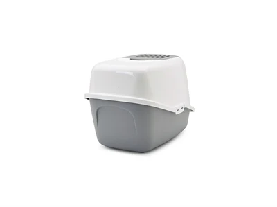 De Savic Kattenbak Nestor Grijs/Wit 56X39X38,5 cm is een ruime kattenbak met kap in modieuze kleuren met eenvoudig kliksysteem om snel de bak te verschonen. Kattenbakken zijn natuurlijk functioneel, maar deze mooi gevormde kattenbak van Savic heeft ook nog modieuze kleurstelling. Het deurtje kan samen met het binnenste gedeelte van de bovenzijde in een handomdraai los te geklikt worden. Hierdoor hoef je niet meer de complete bovenzijde van de onderbak los te maken om de bak schoon te maken. Het los geklikte gedeelte duw je eenvoudig omhoog, waardoor je makkelijk bij de inhoud kan.