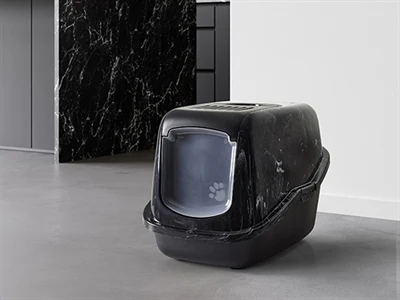 De Savic Kattenbak Nestor Marble Zwart/Wit 56X39X38,5 cm is een modern kattentoilet met opklapbare voorkant voor een snelle reiniging. Door het handige design maak je deze kattenbak in een handomdraai schoon! De voorkant gaat namelijk extra ver open, waardoor je de bak makkelijk uit kunt scheppen zonder de hele kap te hoeven verwijderen.