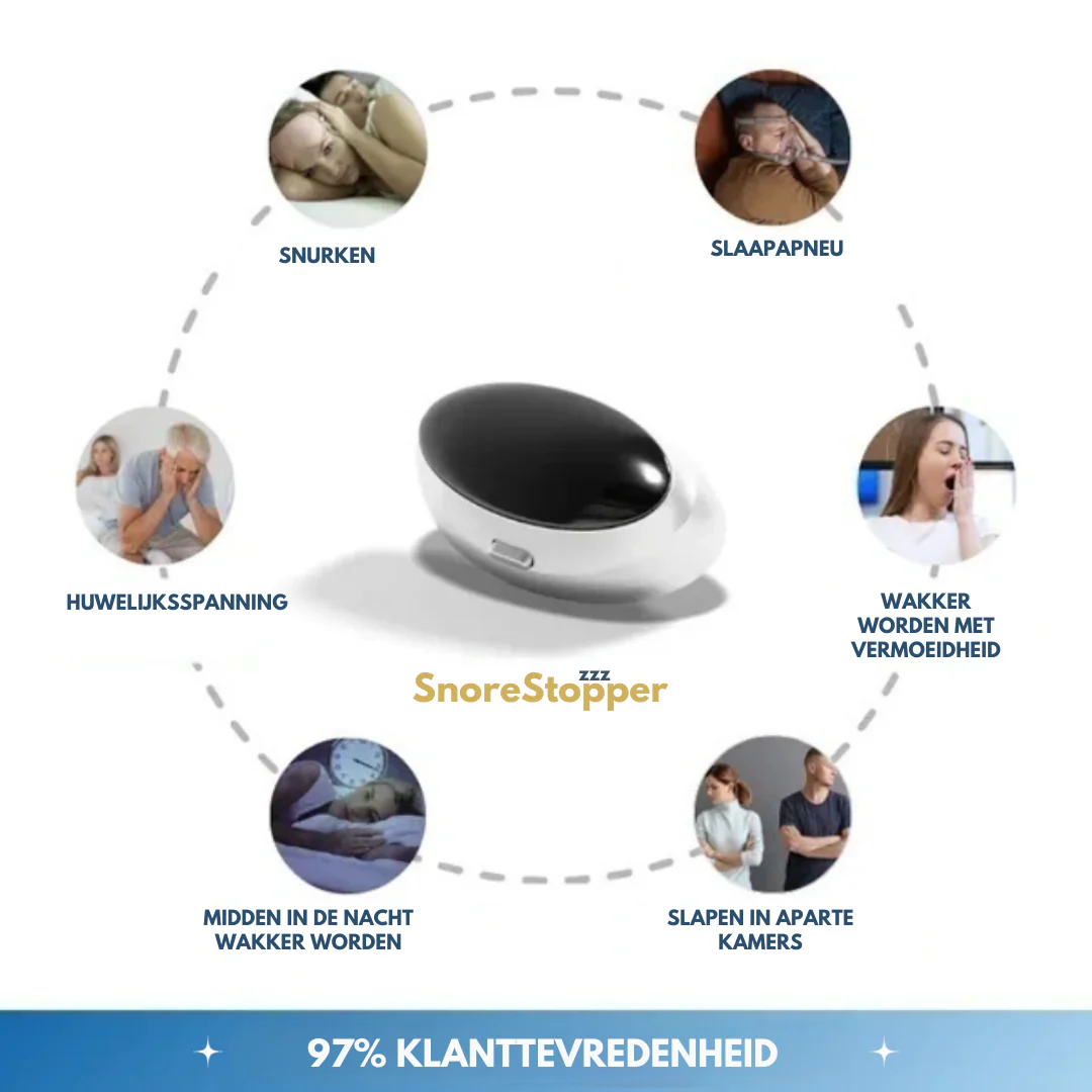 SnoreStopper biedt een eenvoudige, pijnloze oplossing tegen snurken. Door de luchtwegen open te houden, slaap je dieper en word je energieker wakker. Bovendien helpt het niet alleen bij snurken, maar verbetert het je algehele slaapkwaliteit.