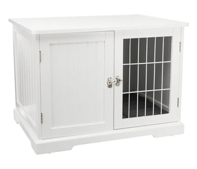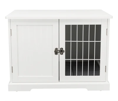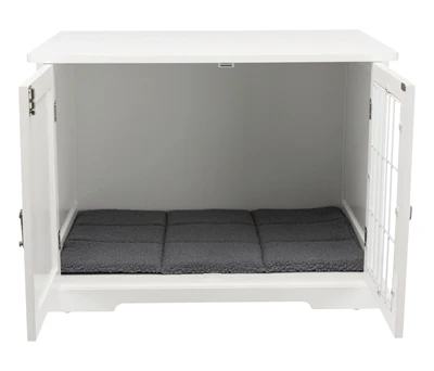 De Trixie Bench Home Kennel Hond Wit 73 x 53 x 53 cm is een comfortabele, houten kamerbench voor de hond, gemaakt van hout met traliedeur en mat in schapenvachtlook.