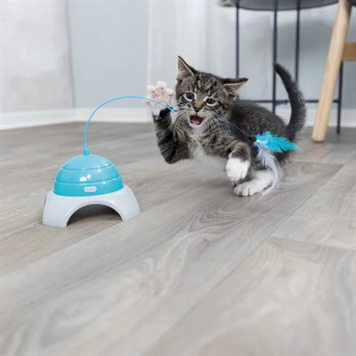 Trixie Catch Me is een interactief kattenspeelgoed dat jouw kat uitdaagt om te jagen en te spelen. De ingebouwde motor laat de speelhengel alle kanten op bewegen, terwijl jij met de afstandsbediening bepaalt hoe het speeltje reageert. De onvoorspelbare bewegingen houden je kat actief en geboeid. Gemaakt van kunststof en geleverd met een extra speelhengel als reserve.
