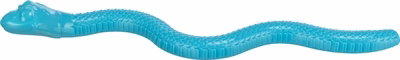 De Trixie TPR Snackslang 59 cm hondenspeelgoed is een hondenspeeltje van TPR die gevuld kan worden met snacks. Wil je jouw hond bezighouden als je er niet bent, of op een leuke manier belonen? Deze vrolijke snack-slang van Trixie biedt daar de perfecte manier voor! De slang is gemaakt van thermoplastisch rubber en is open aan de onderzijde. In deze spleetvormige opening kun je verschillende soorten voer of snacks met een ronde vorm stoppen, zodat de hond spelenderwijs bezig is zijn beloning te krijgen. Door de smalle opening is de slang ook geschikt voor bijvoorbeeld leverworst of een pasta.