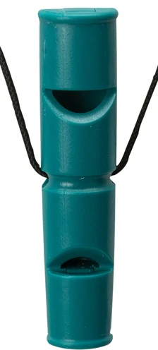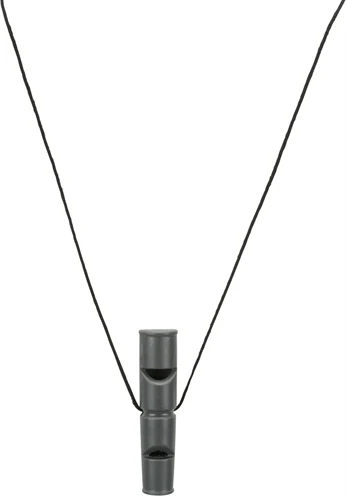 De Trixie Hondenfluit Dubbeltoon Kunststof Assorti 7,5 cm is een tweetonige fluit met fluit- en tjilptoon, ideaal voor trainen over grote afstanden voorzien van koord. Omdat de fluit twee diverse tonen heeft, is hij ideaal om meerdere commando’s te trainen. Door het volume en de frequentie van de tonen kan dit bovendien ook over grote afstanden, dus ook buiten in het veld, bos of op het strand. De fluit is van kunststof en voorzien van een koord om hem bijvoorbeeld om de nek te hangen.