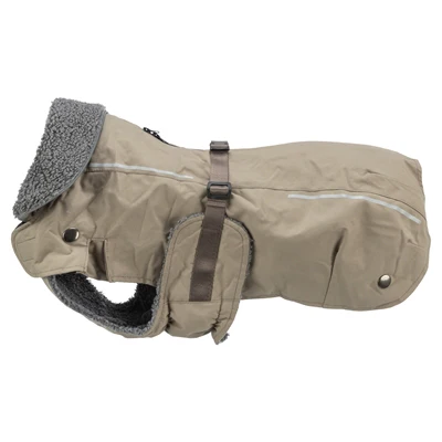 De Trixie Hondenjas Rouen Zand 40 cm is de perfecte hondenjas voor korte, compacte honden zoals mopshonden en bulldogs! De jas is gemaakt van hoogwaardig polyester en biedt optimale bescherming en comfort. De uitneembare voering van pluche zorgt ervoor dat je hond het altijd lekker warm heeft, terwijl de reflecterende elementen de zichtbaarheid in het donker verbeteren. De elastische buikslab beschermt tegen kou en vuil en dankzij de klittenbandsluiting in het borstgedeelte is de jas eenvoudig aan en uit te trekken. De buikriem is voorzien van een gesp. De beenlussen voor de achterpoten zijn verstelbaar. De trekkoorden op het ruggedeelte en wijde pasvorm zorgt ervoor dat de jas perfect aansluit zonder te knellen bij compacte hondenrassen. Bovendien is de jas waterafstotend en kan hij gemakkelijk gewassen worden op 30 graden. Met deze handige waterdichte jas van Trixie weten jullie elk weer te trotseren.