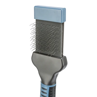 Fijne zachte slickerborstel met een flexibele kop voor het borstelen van de vacht. Door het borstelen komen de meeste doden haren uit de vacht.