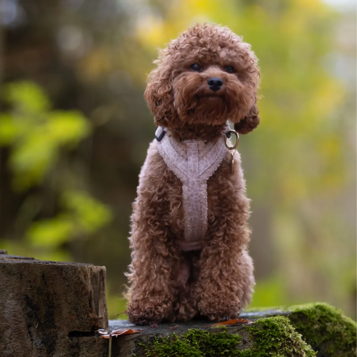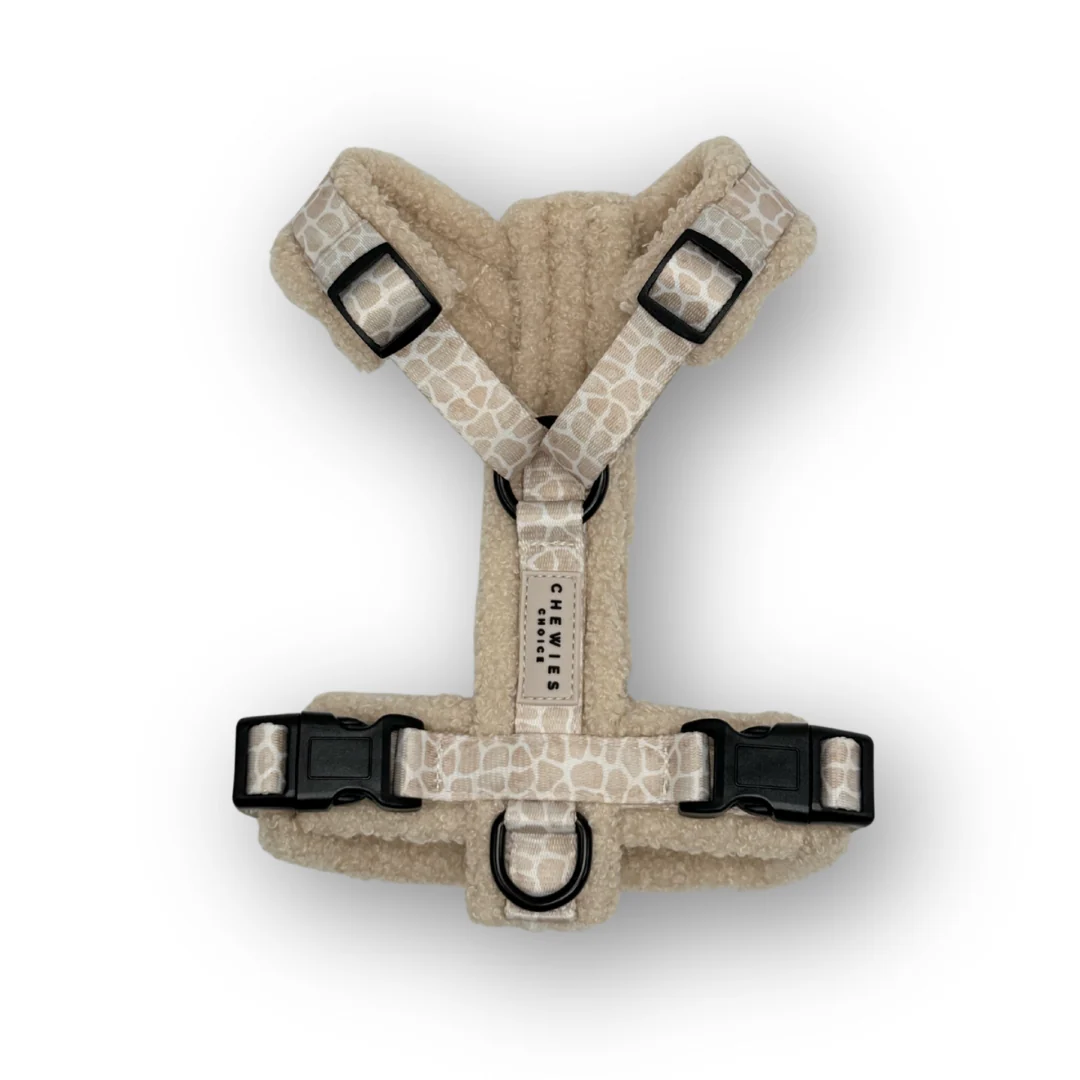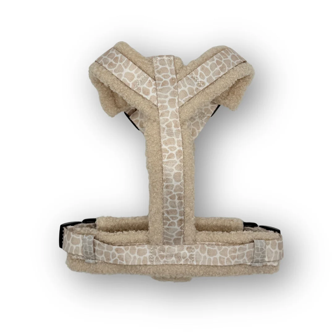 Het beige teddy Y-tuig met Savanna-print combineert prachtig met de zachte, effen Teddy Bear-accessoires. Samen vormen ze de perfecte balans tussen natuurlijke tinten en ultiem draagcomfort.