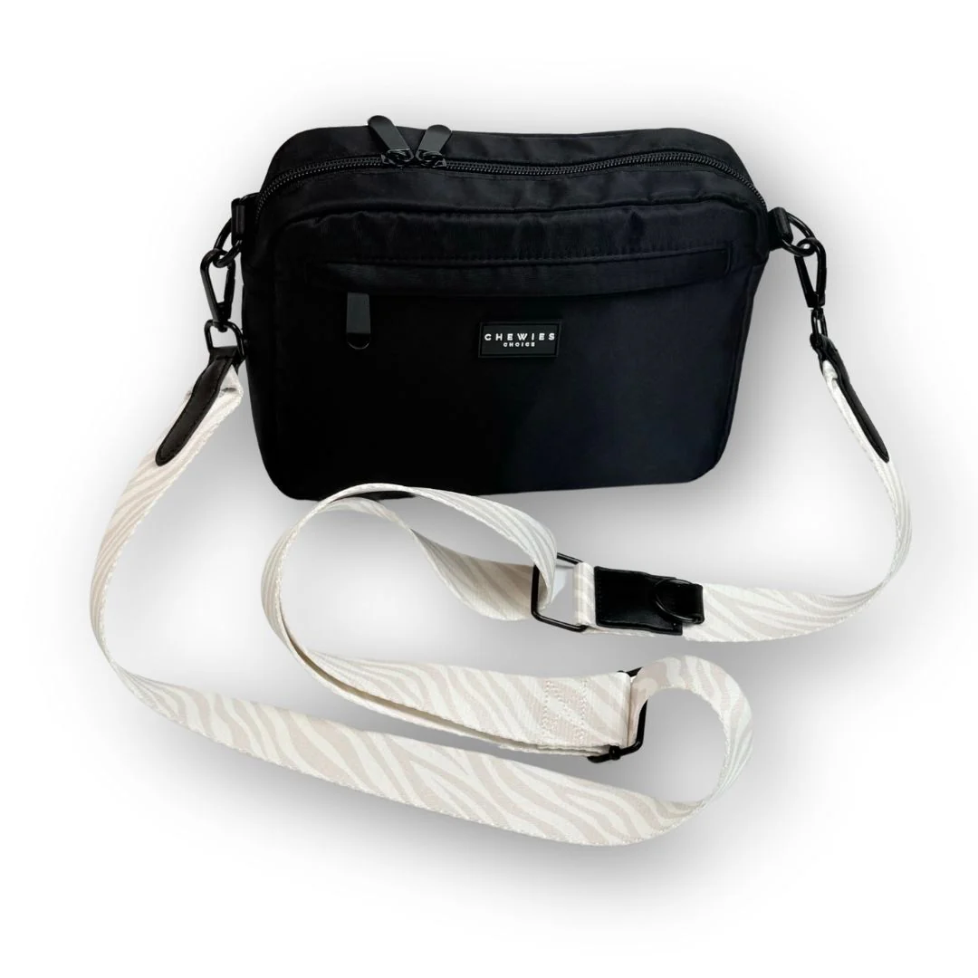 Draag de Dog Mom Bag crossbody of als bum bag met de zwarte strap.
